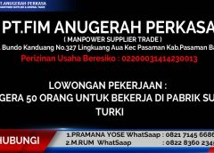 PT. FIM Anugerah Perkasa adalah perusahaan resmi Penyalur Pekerja Migran Indonesia (PMI) yang membantu menghubungkan WNI dengan peluang karier profesional di luar negeri, fokus ke negara-negara di Asia dan Eropa dengan gaji tinggi, termasuk ke Turki, menawarkan legalitas terjamin dan pengembangan diri bagi para pekerja migran. Perusahaan ini terdaftar resmi di SISKOP2MI dan memiliki izin resmi, memastikan proses penempatan sesuai aturan pemerintah.